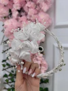 029 Headband Faixa Infantil Pérolas Brancas e Flores - Diversas Cores