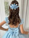 Presilha Infantil Laço Luxo Com Pérolas e Flores Para Cabelo