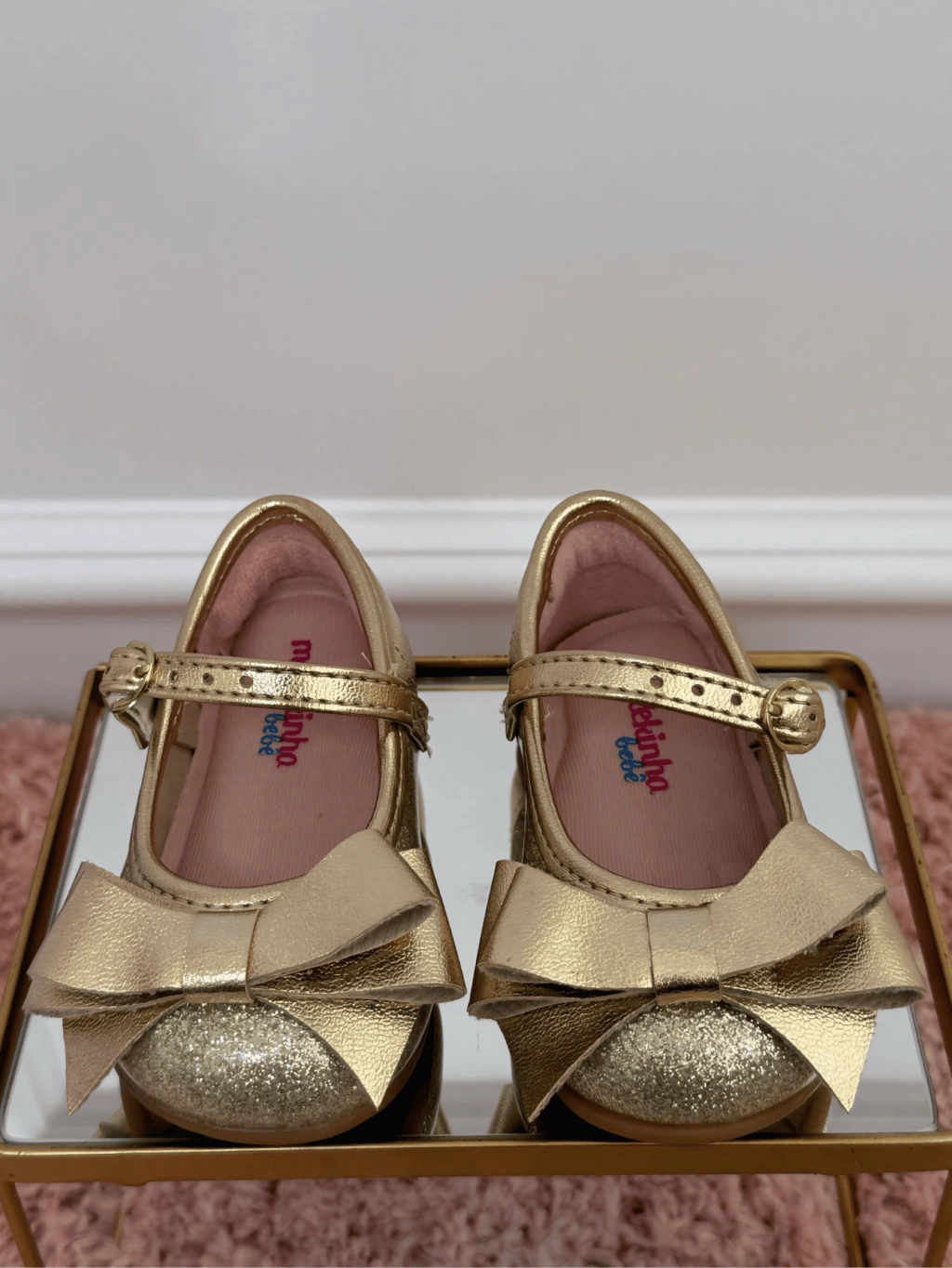sapatinho infantil feminino, sapatilha bebê com laço, sapato dourado menina, sapato ouro rosado bebê, calçado infantil confortável, sapatinho festa bebê, sapato bebê luxo, calçado bebê feminino com glitter, sapatinho bebê tamanho 17 ao 25.