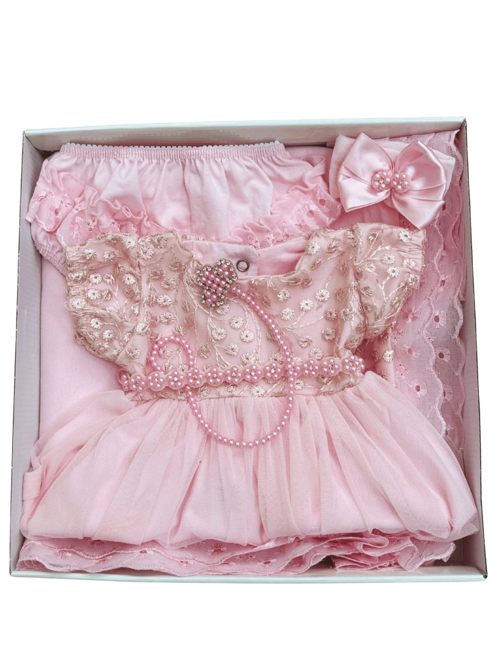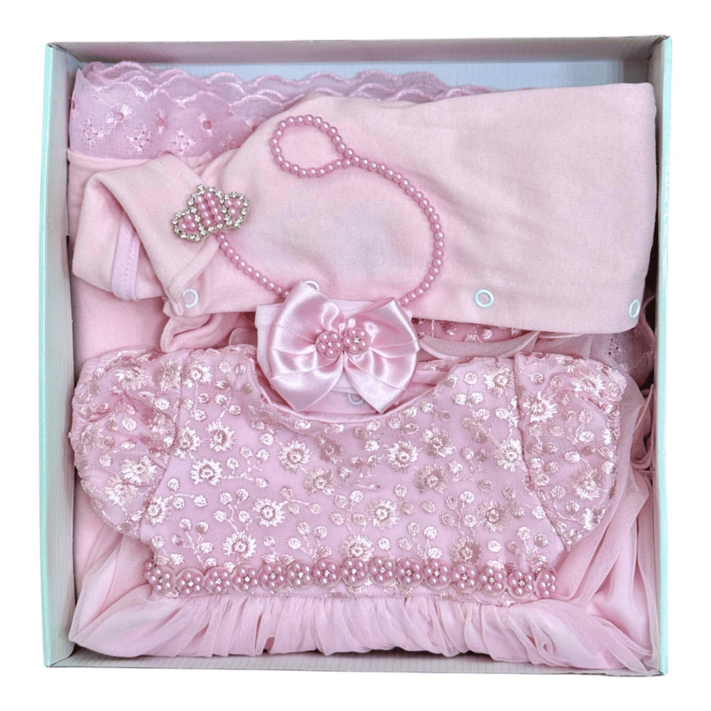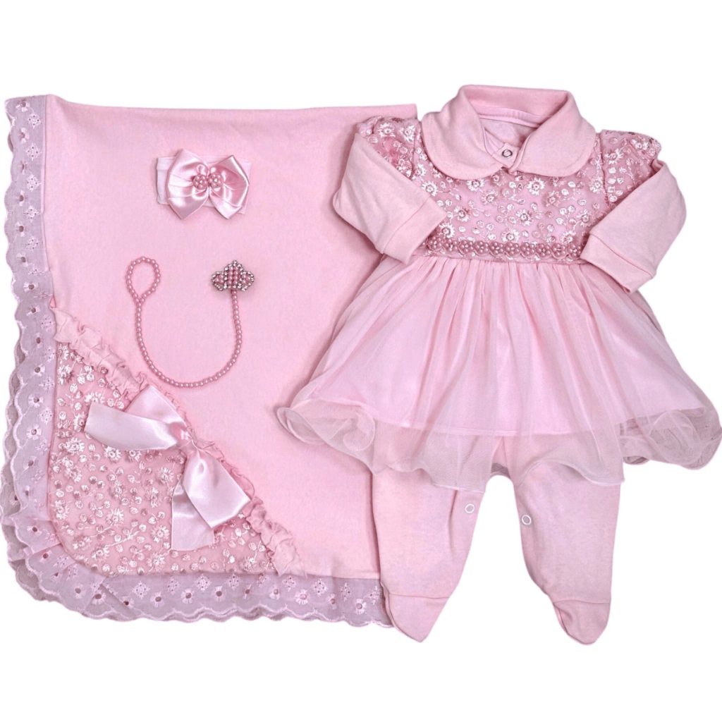 Encante nesse momento único com essa saída de maternidade feminina luxuosa, pensada nos mínimos detalhes para a sua princesa. Um kit completo que une conforto, delicadeza e sofisticação, ideal para o primeiro dia da sua bebê ou como presente especial.