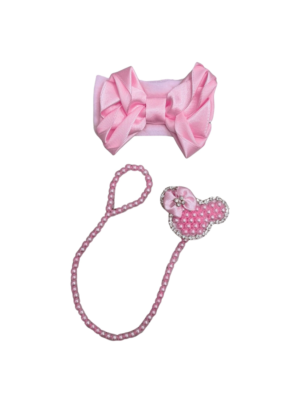 Peça sofisticada com strass/pérolas, que pode ser usada como prendedor de chupeta ou como um elegante broche no vestido.