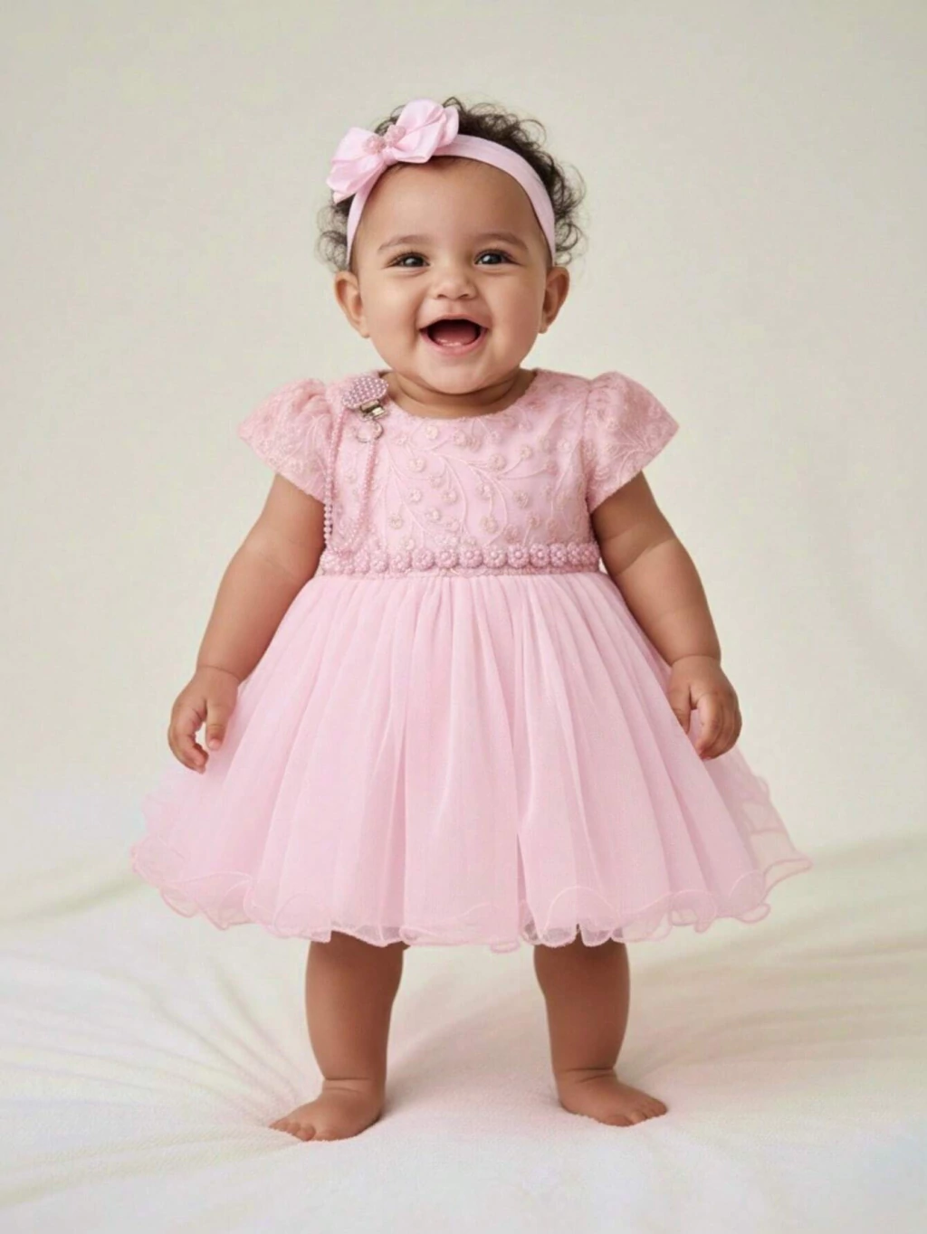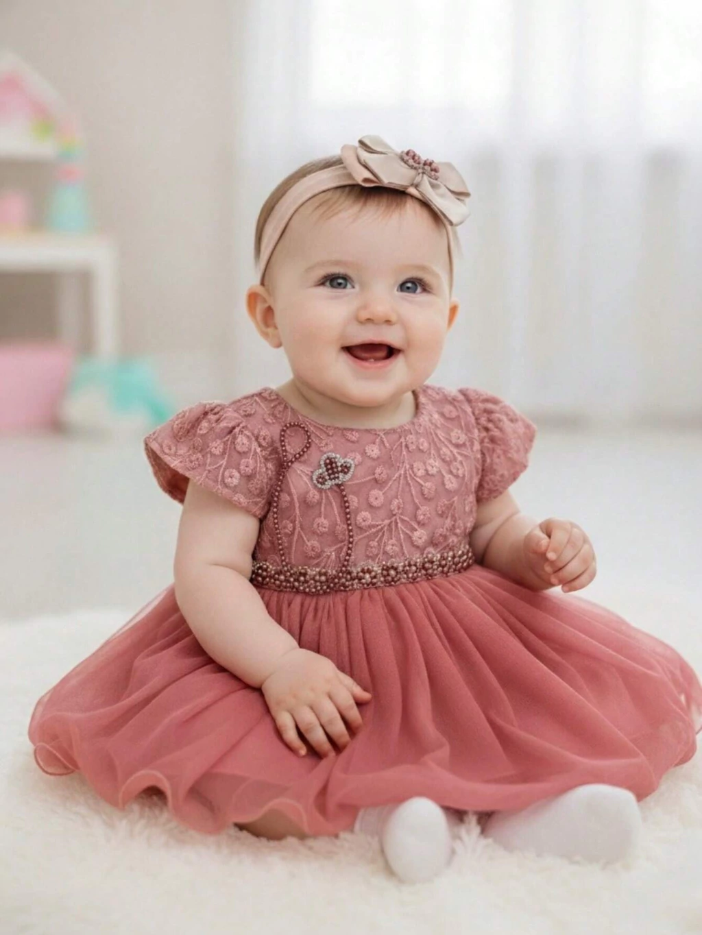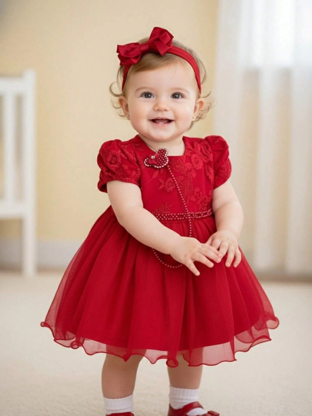 Vestido Bebê Menina Luxo: Design elegante e acabamento de alta costura.