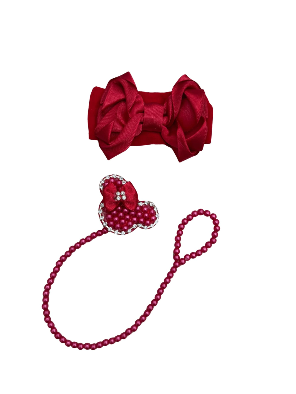 Combinando perfeitamente com o vestido, com laço e detalhes finos.