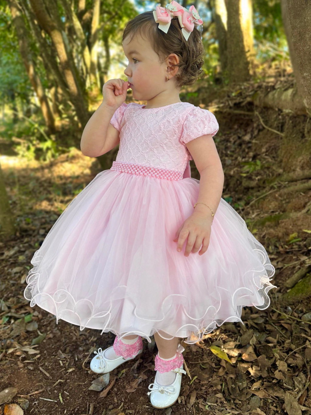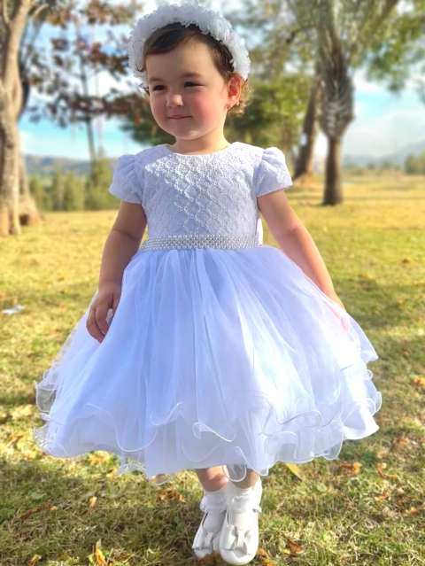 Destaque sua pequena princesa com este deslumbrante vestido infantil branco, perfeito para casamentos, batizados, aniversários e outras ocasiões especiais.
