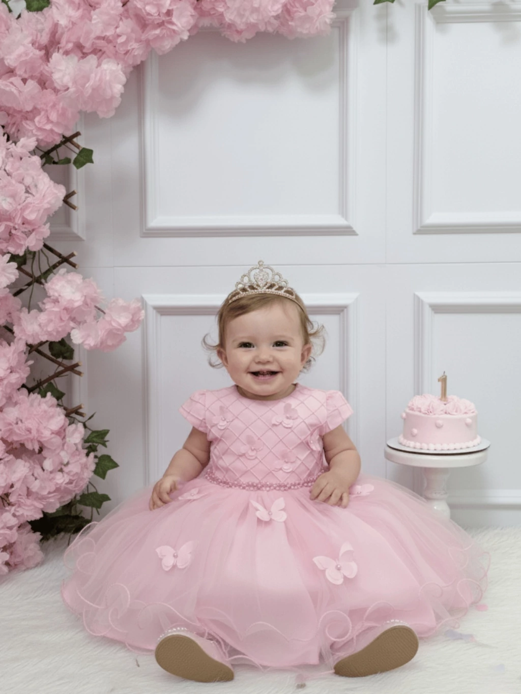 Celebre o primeiro aninho da sua princesa com este deslumbrante Vestido de Festa Infantil de Luxo! Perfeito para o momento mais especial, este modelo exclusivo combina o charme da realeza com a delicadeza de um jardim encantado, garantindo fotos memoráveis e um dia inesquecível.