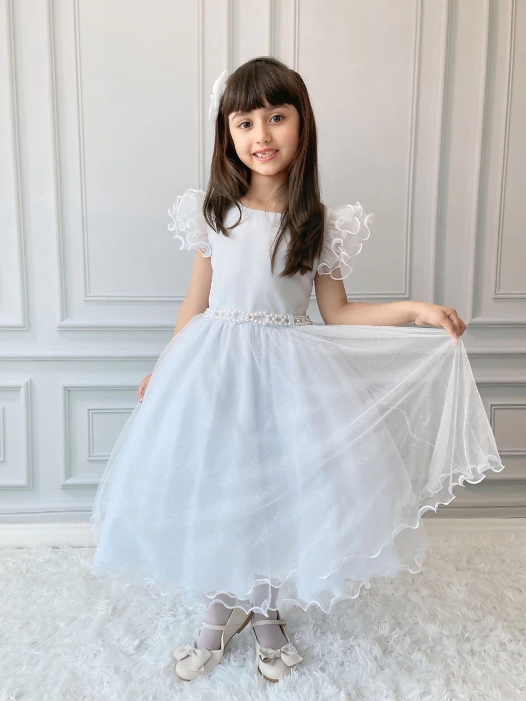 3590 Vestido Festa Infantil Juvenil Branco Princesa Luxo 1 ao 12