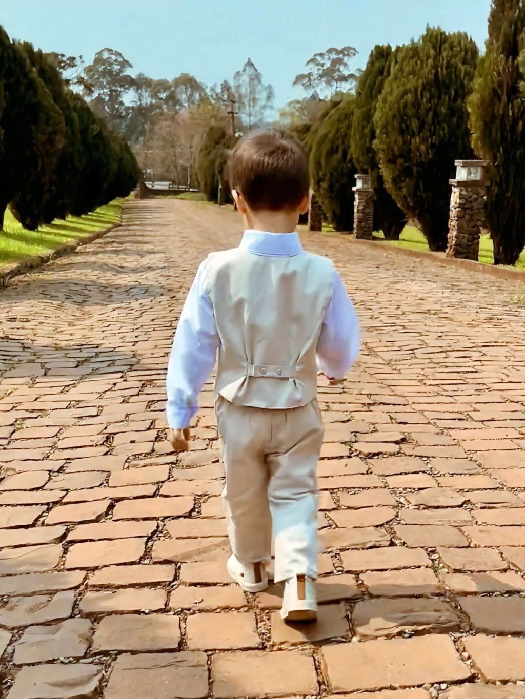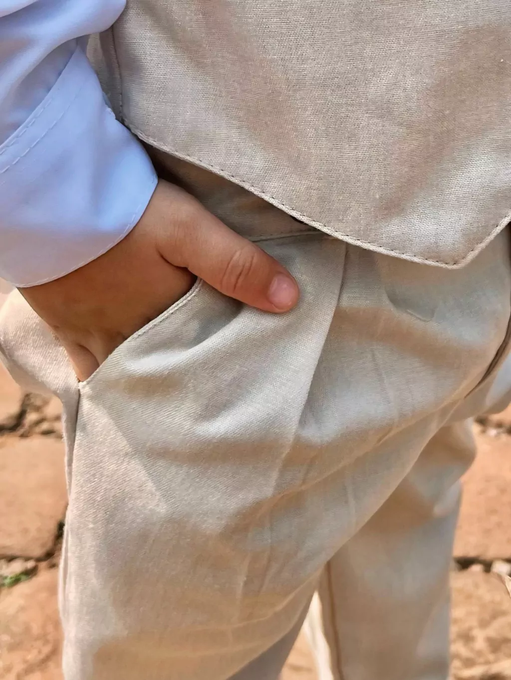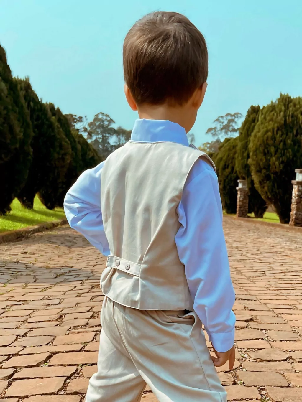 800 Conjunto Menino Colete C/Calça Bege -P.M.G.1.2.3.4.6.8.10.12