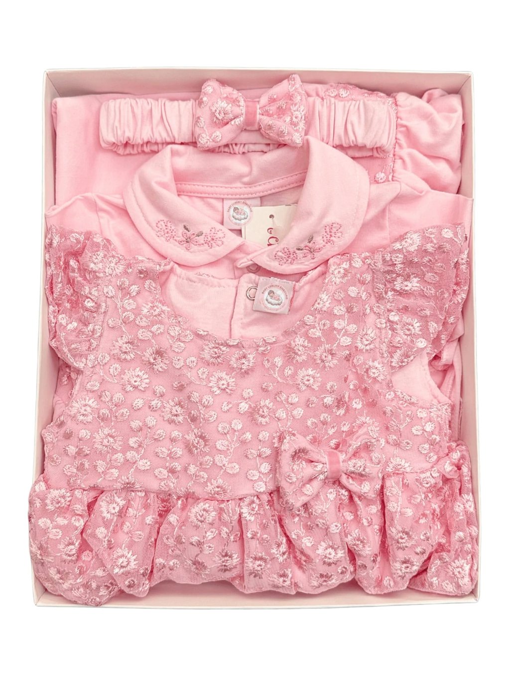 Encante nesse momento único com essa saída de maternidade feminina luxuosa, pensada nos mínimos detalhes para a sua princesa. Um kit completo que une conforto, delicadeza e sofisticação, ideal para o primeiro dia da sua bebê ou como presente especial.