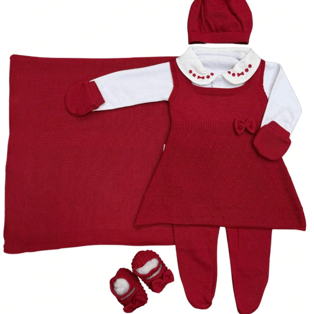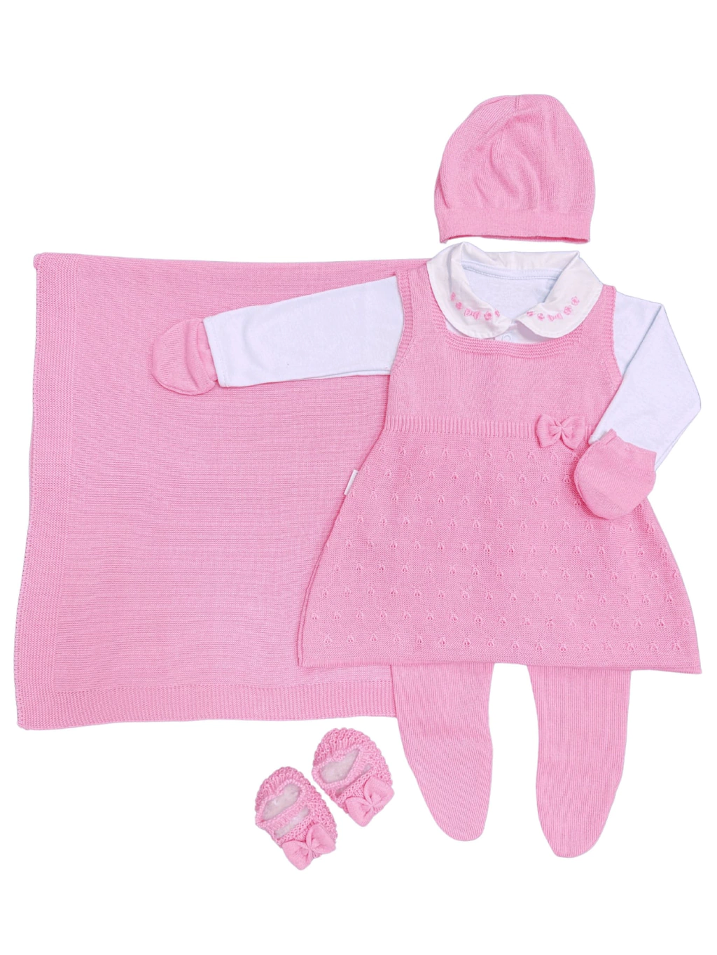 Nossa Saída de Maternidade em Tricô Premium – 7 Peças traz todo o conforto, elegância e sofisticação que sua princesa merece no grande dia.
