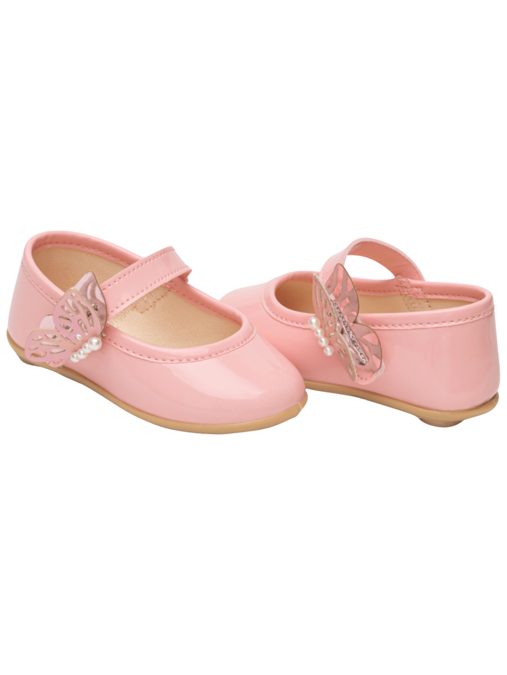 Leveza, delicadeza e um toque de magia em cada passo! A Sapatilha Infantil Borboleta Encantada é perfeita para compor looks especiais com muito charme e conforto. Feita em material sintético com acabamento envernizado, ela conta com um detalhe encantador de borboleta metálica com apliques de pérolas, trazendo um toque lúdico e sofisticado ao visual das pequenas.