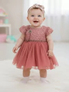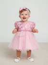 2102 Vestido Bebê Luxo Rosê C/ Brilho - P.M.G
